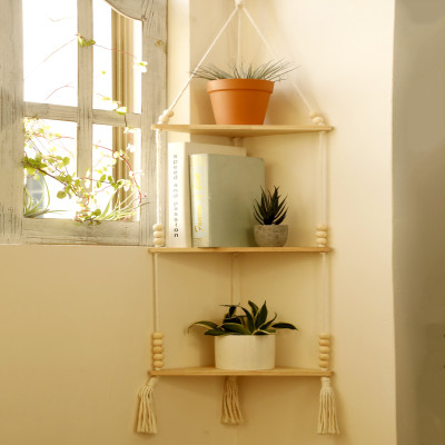 1/2/3-طبقات رف زاوية الخشب عرض موقف بوهو ديكور المنزل النمط الرعوي مكرميه اليدوية رفوف عائمة غرفة المعيشة